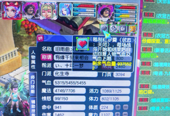 在现在的梦幻西游中某些玩家是不需要买秘制红蓝的,因为他们的秘制红蓝现在根本就用不掉。因为他们的某些锦衣和祥瑞的抽奖玩法中直接抽出来了大量的秘制红蓝。上面这位玩家现在就用着近千万的秘制血量呢,不过上面这位玩家现在很苦恼,因为上面这位玩家现在玩的门派是化生寺,化生寺本身就是拥有着给自己加血的技能的,很多化生寺的玩家都不会选择去酒店,他们都是直接用技能加血,但是上面这位玩家现在却拥有着937万的秘制红,现在该怎么办呀?这些秘制红根本就用不掉。